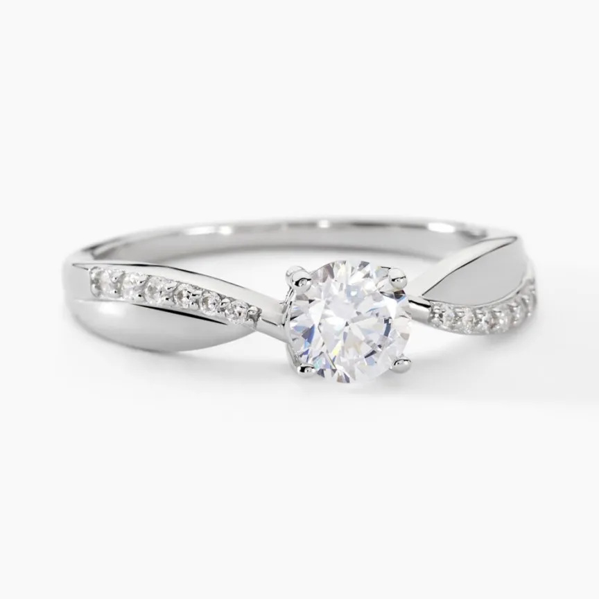 Solitaire Argent Blanc 925/1000 Corps De Bague Pince Et Accompagne Oxydes De Zirconium