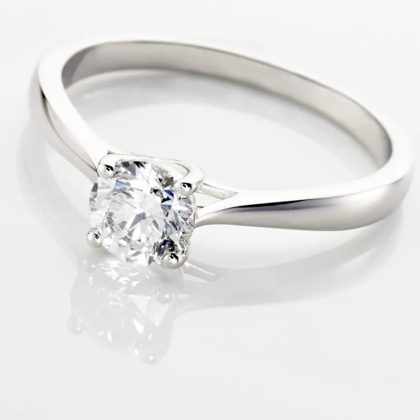 Solitaire Or Blanc 750/1000 Diamant Central Synthetique 0.70cts Serti 4 Griffes