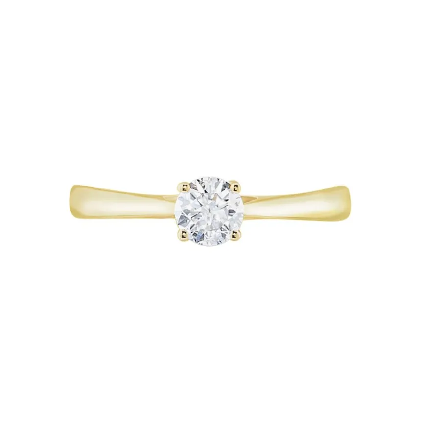 Solitaire Or Jaune 750/1000 Diamant Central Synthétique 0.40cts Serti 4 Griffes