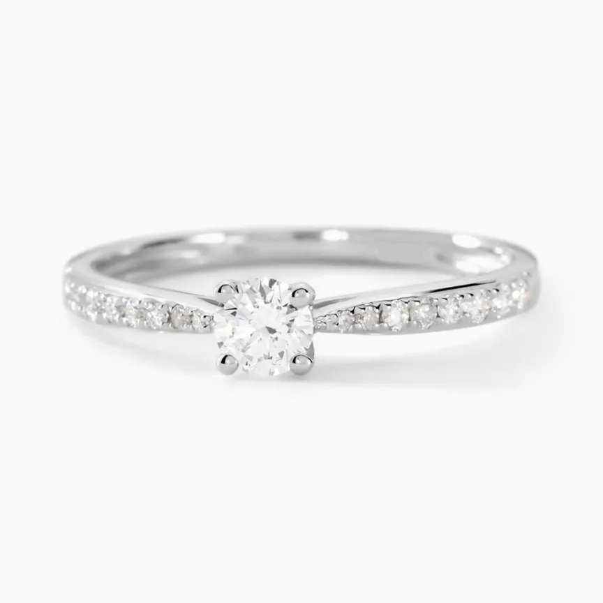 Solitaire Or Blanc 375/1000 Diamant Central 0.20cts Serti Griffes Accompagne Diamants
