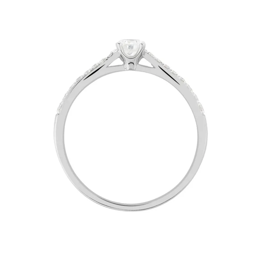 Solitaire Or Blanc 750/1000 Diamant Central 0.2cts Serti Griffes Accompagnes Diamants