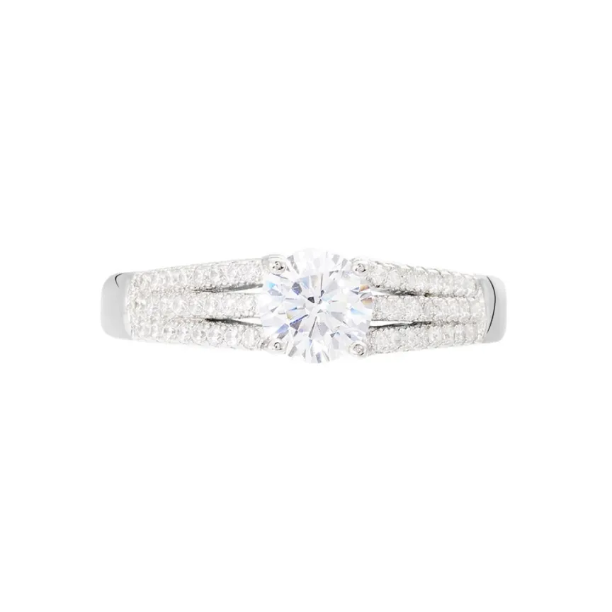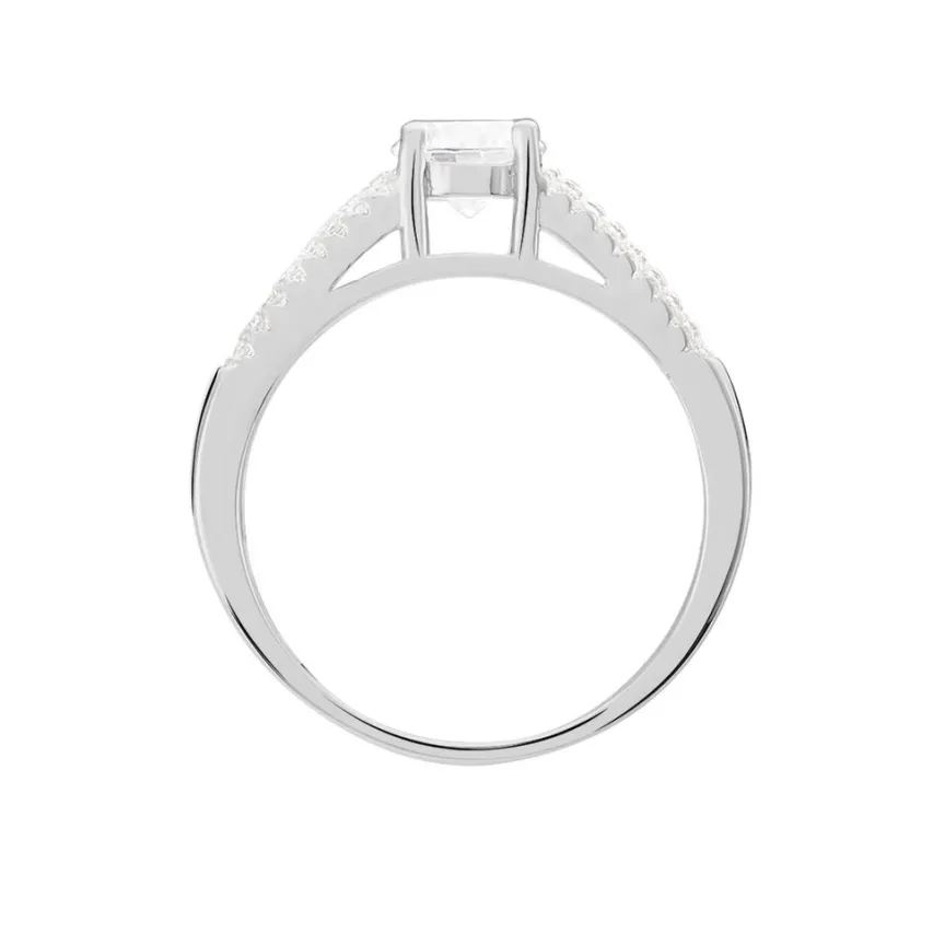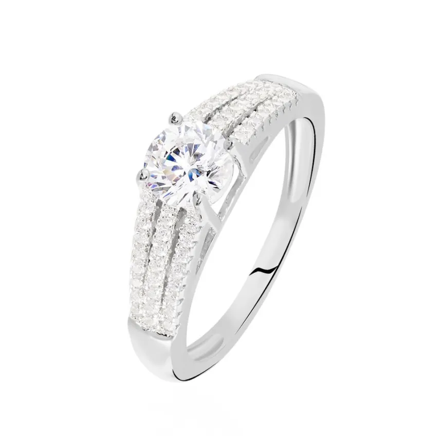 Bague Solitaire Argent Blanc 925/1000 Oxyde De Zirconium Accompagne Oxydes De Zirconium