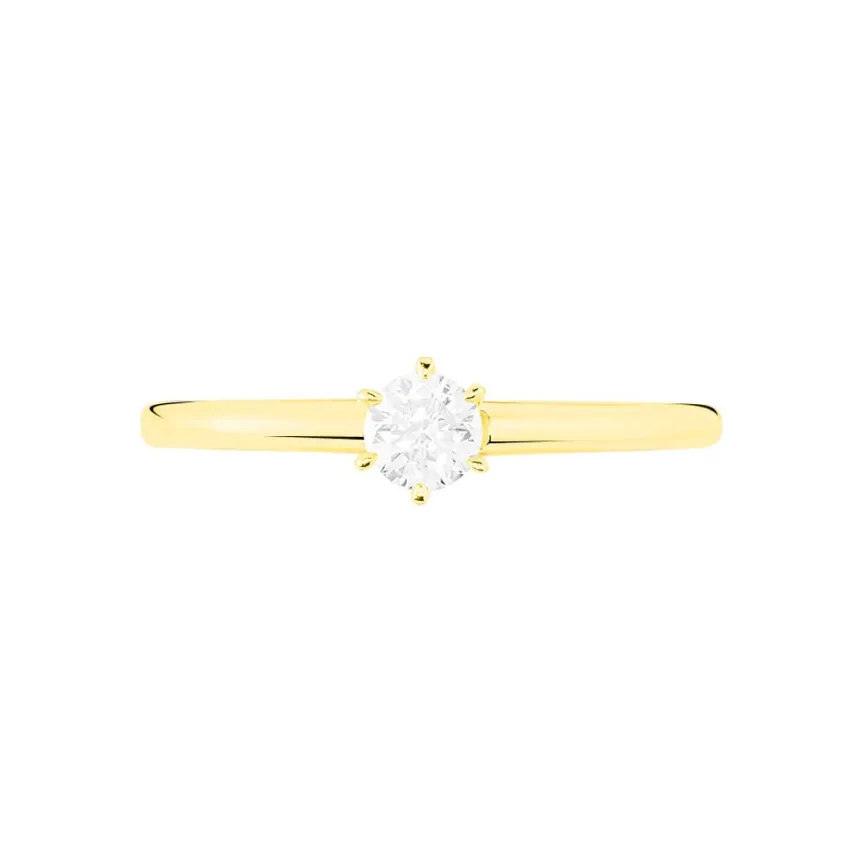 Solitaire Or Jaune 750/1000 Diamant 0.2cts Serti 6 Griffes