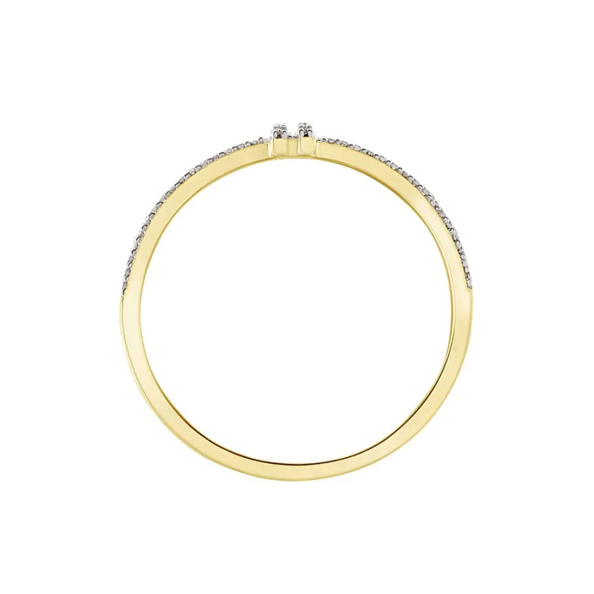 Bague Or Jaune 375/1000 Deux Rangs Pavage Diamants