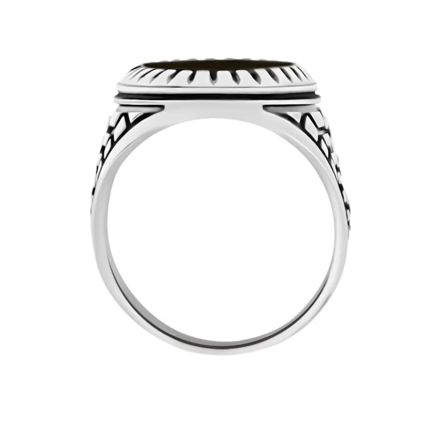 Bague Argent 925/1000 Onyx Noire Corps De Bague Motifs Geometriques Effet Vieilli
