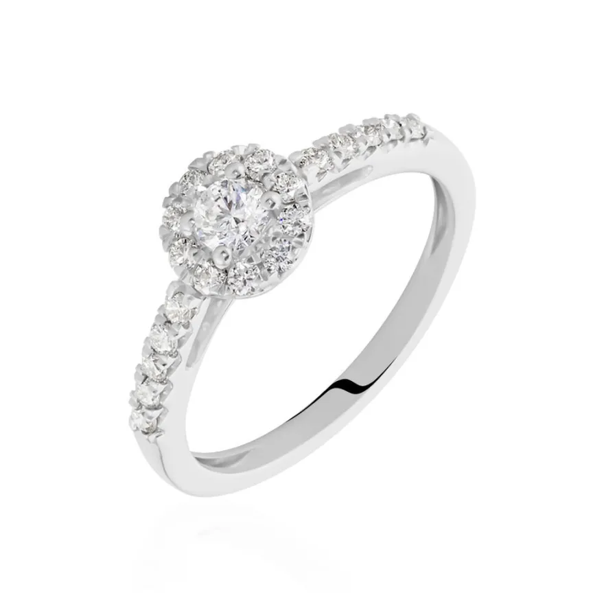 Bague Platine 950/1000 Diamant Central Serti Griffes Accompagne Diamants 0.49cts