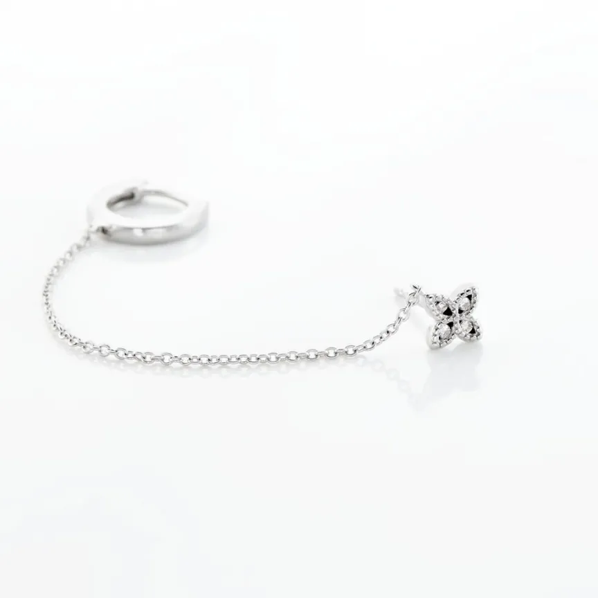 Bijou D’oreille Unitaire Argent Blanc 925/1000 Creole Et Etoile Pavage Oxydes De Zirconium Maille Forcat