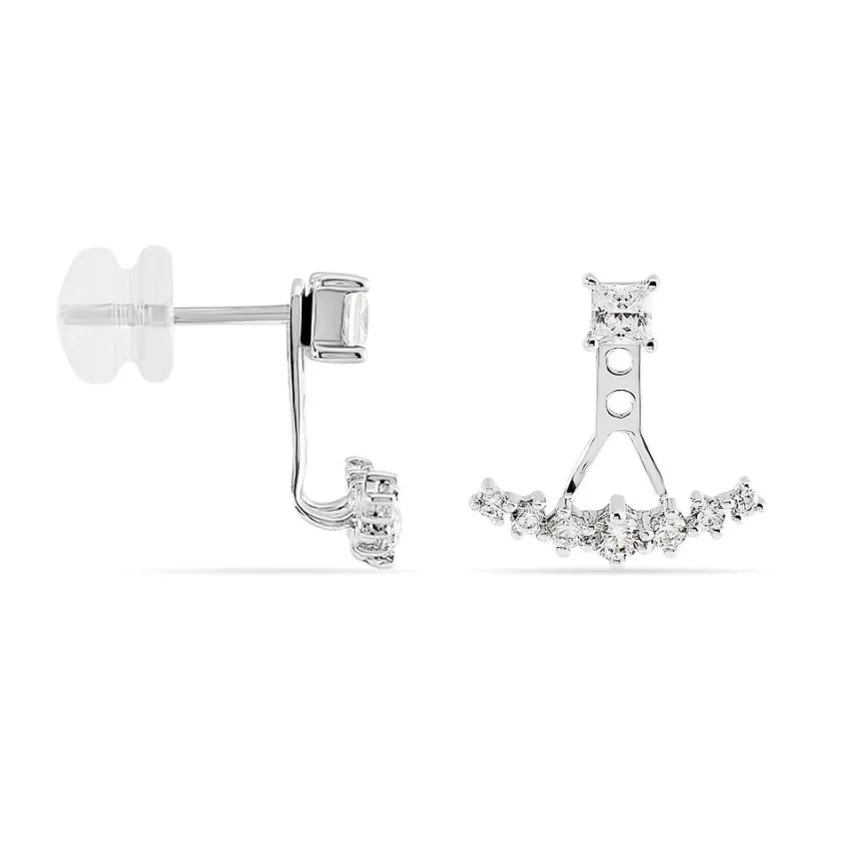 Bijoux D’oreilles Grimpantes Or Blanc 375/1000 Oxydes De Zirconium Gm