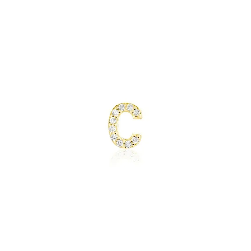 Boucle D’oreille Puce Unitaire Or Jaune 375/1000 Lettre C Oxydes De Zirconium