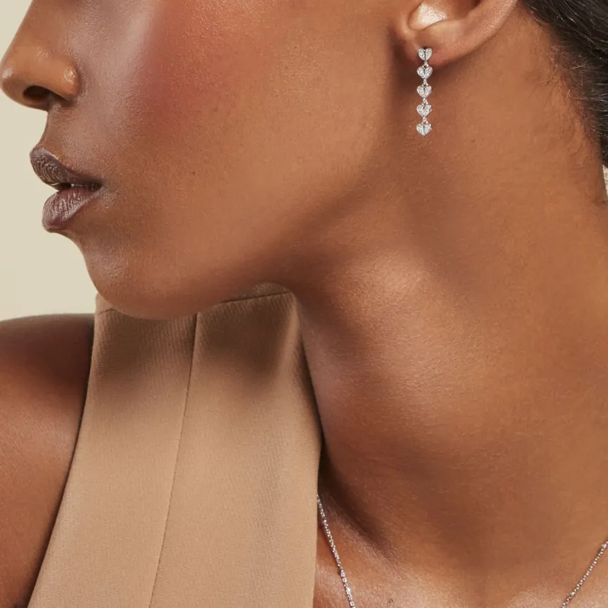 Boucles D’oreilles Dépareillées Argent Blanc 925/1000 C艙urs Oxydes De Zirconium