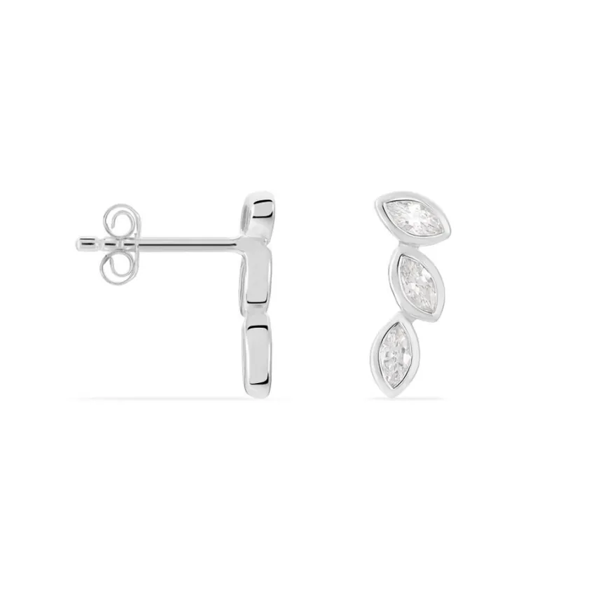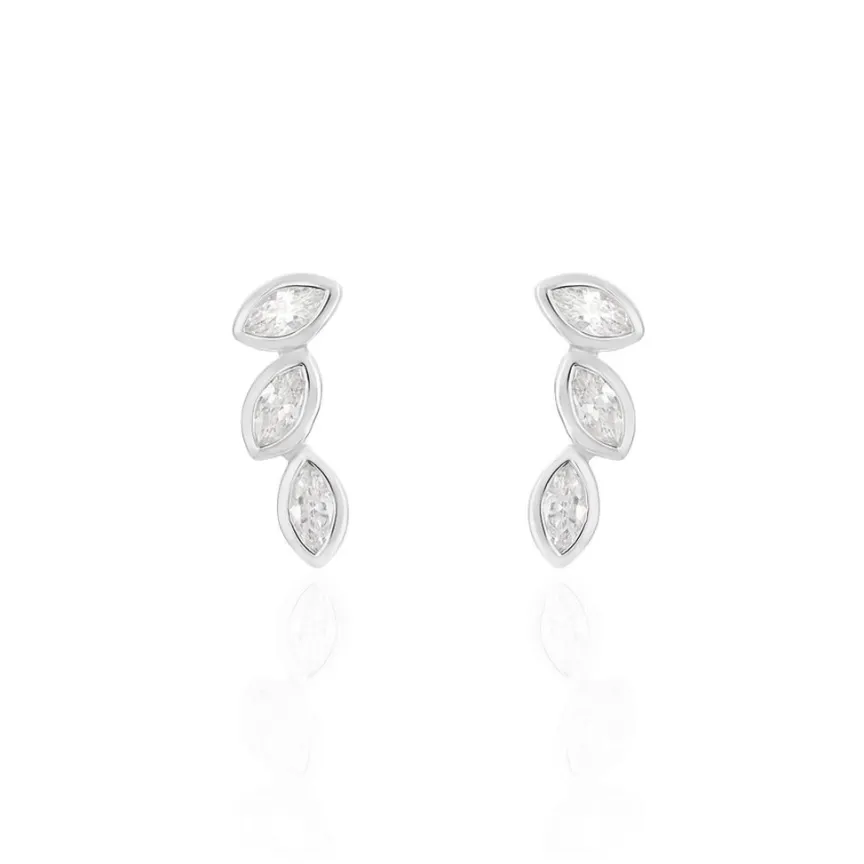 Boucles D’oreilles Grimpantes Argent Blanc 925/1000 Oxydes De Zirconium Taille Navette