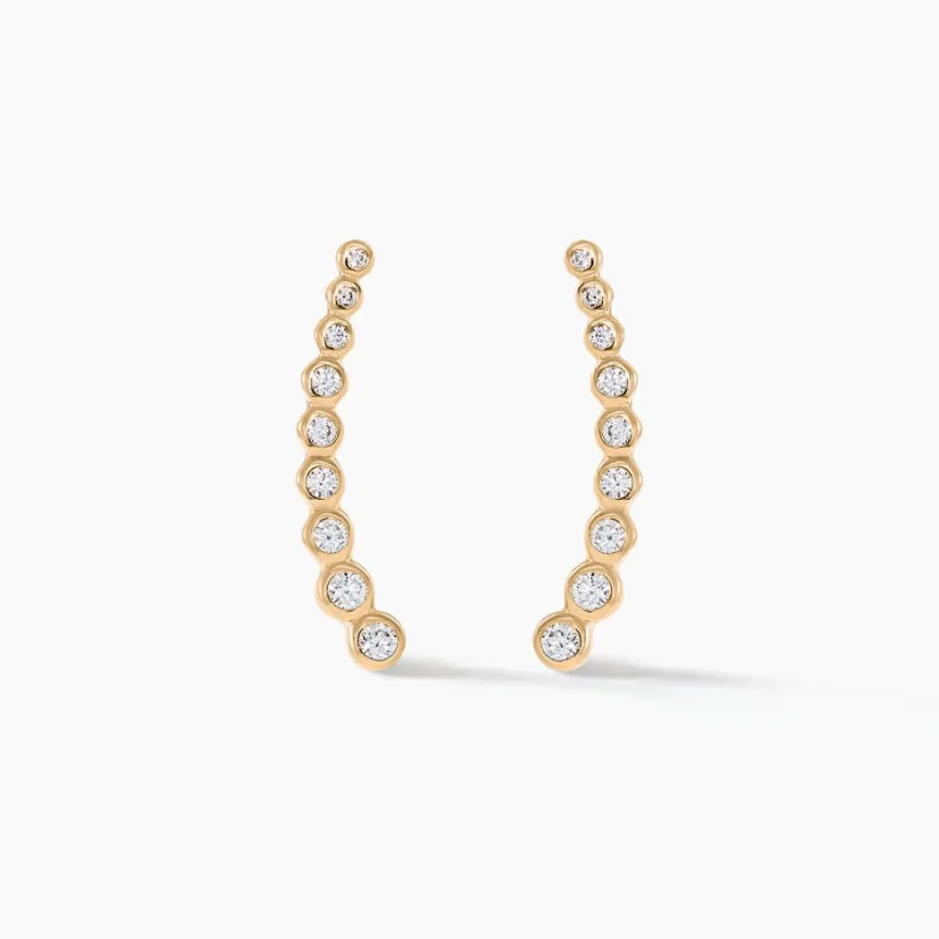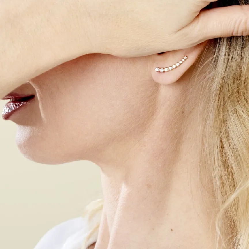 Boucles D’oreilles Grimpantes Plaque Or Jaune Forme Multi Ronds Oxydes De Zirconium