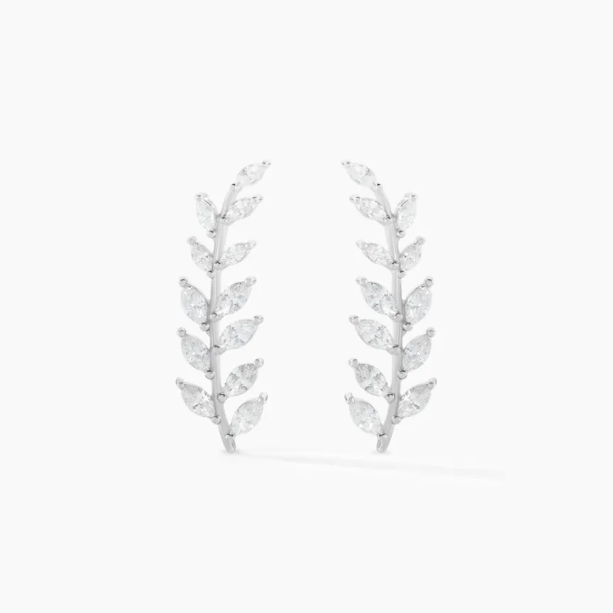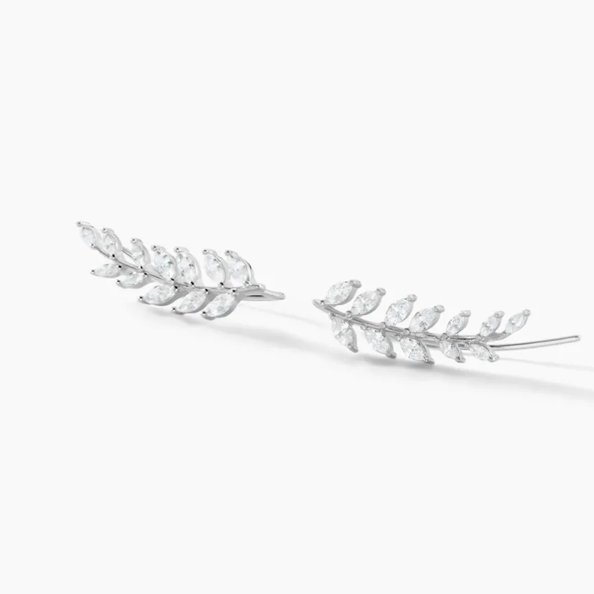 Boucles D’oreilles Grimpantes Argent Blanc 925/1000 Motifs Feuilles Oxydes De Zirconium