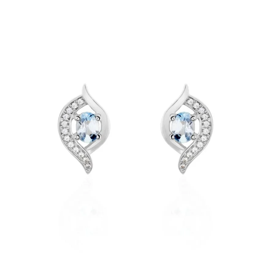 Boucles D’oreilles Puces Or Blanc 375/1000 Formes Vrillées Topazes Et Oxydes De Zirconium