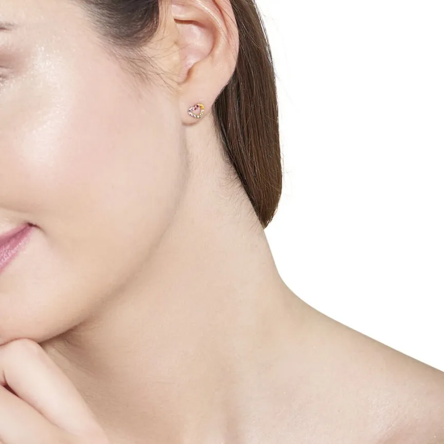 Boucles D’oreilles Or Jaune 375/1000 Puces Motifs C艙urs Ajoures Pavages Oxydes De Zirconium Multicolores