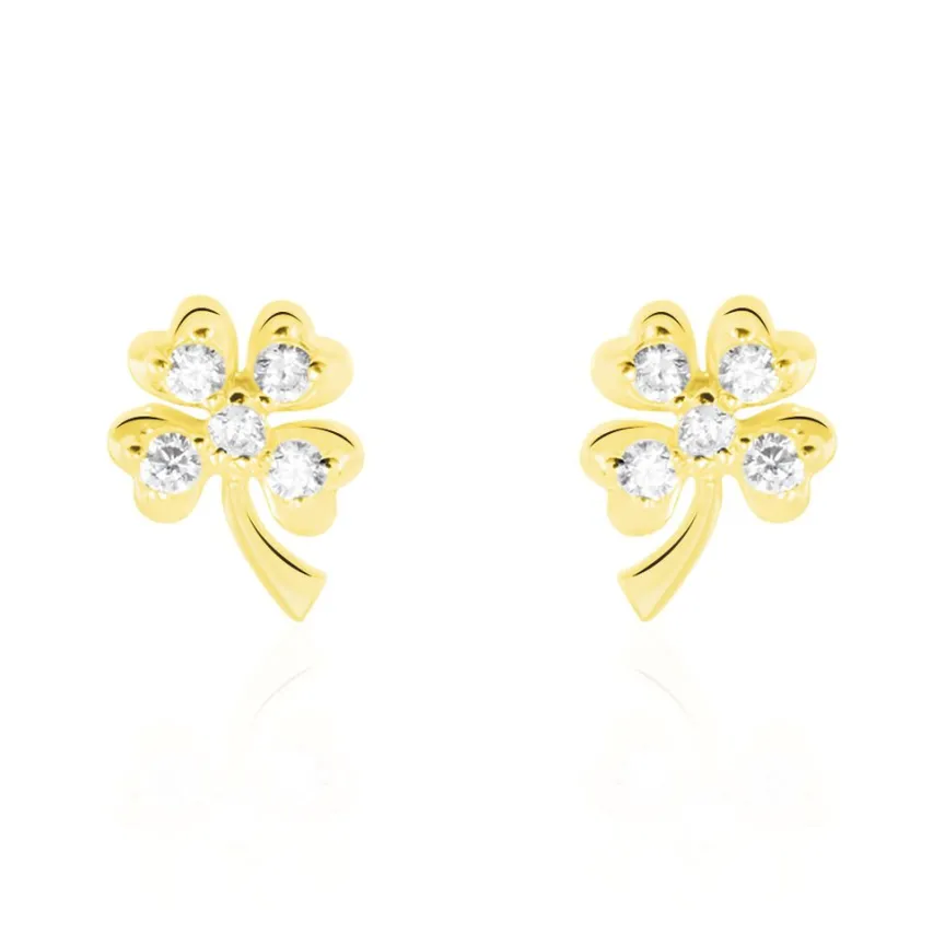 Boucles D’oreilles Or Jaune 375/1000 Trèfle Oxydes De Zirconium