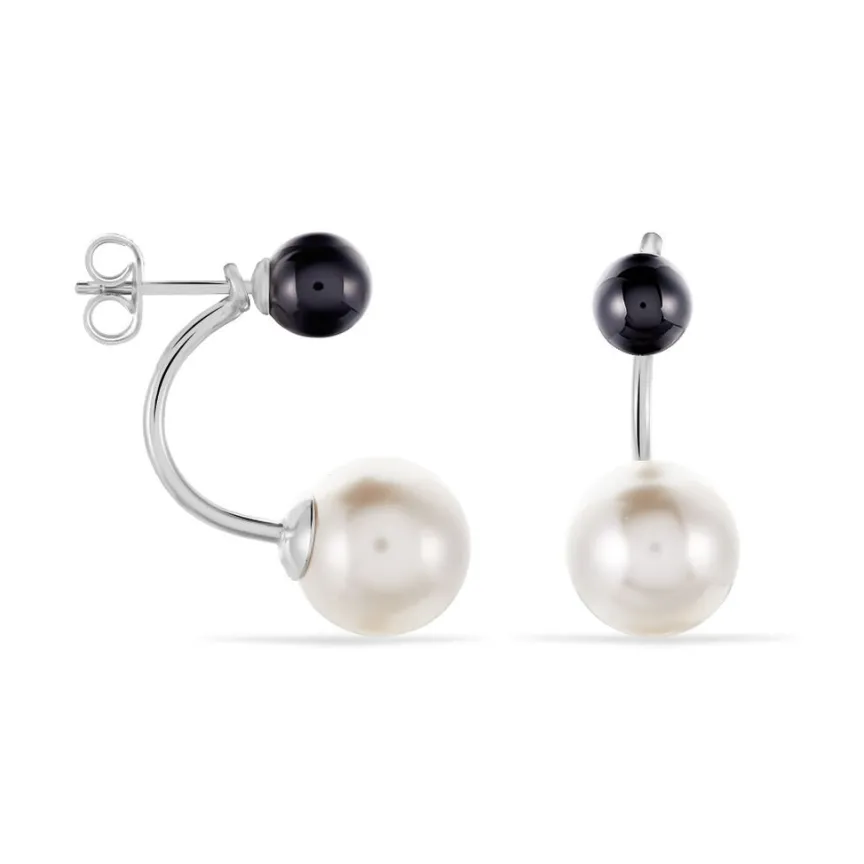 Boucles D’oreilles Argent Blanc 925/1000 Boules De Ceramique