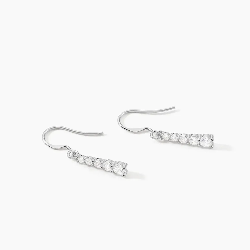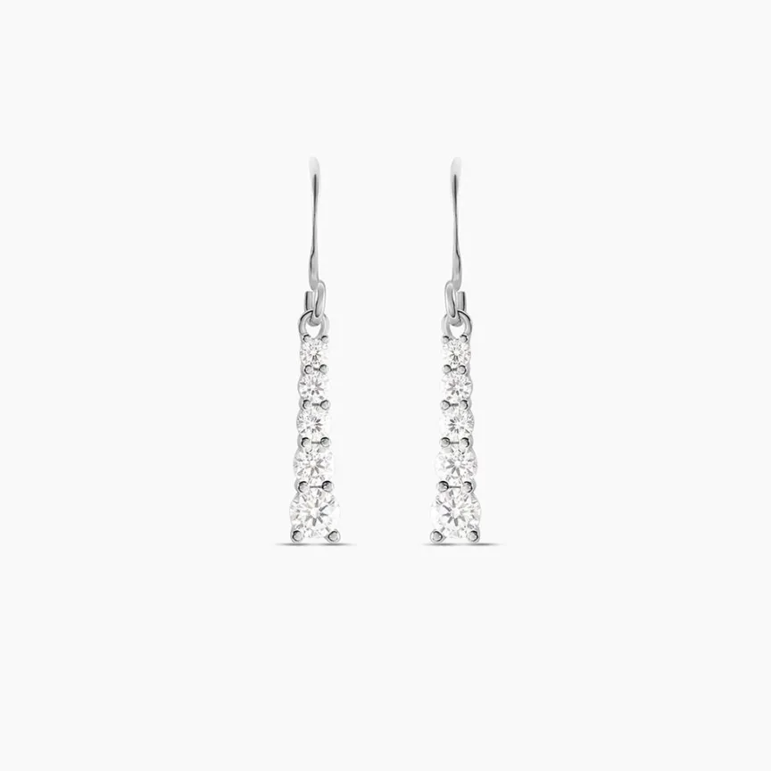 Boucles D’oreilles Pendantes Argent Blanc 925/1000 Petites Rivieres Decroissantes Oxydes De Zirconium
