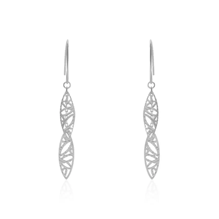 Boucles D’oreilles Or Blanc 375/1000 Pendantes Feuille Eucalyptus