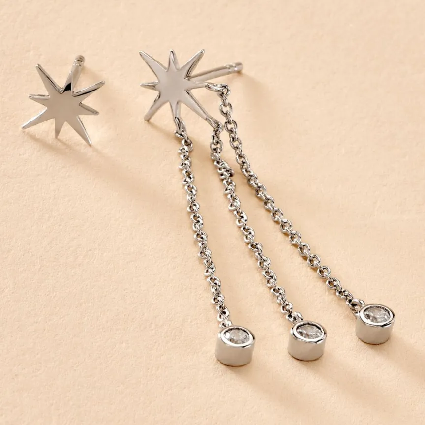Boucles D’oreilles Dépareillées Argent 925/1000 Etoiles Filantes Oxydes De Zirconium