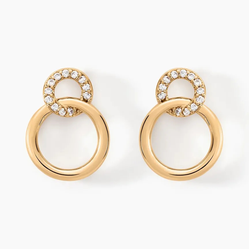 Boucles D’oreilles Pendantes Plaqué Or Jaune Deux Cercles Oxydes De Zirconium