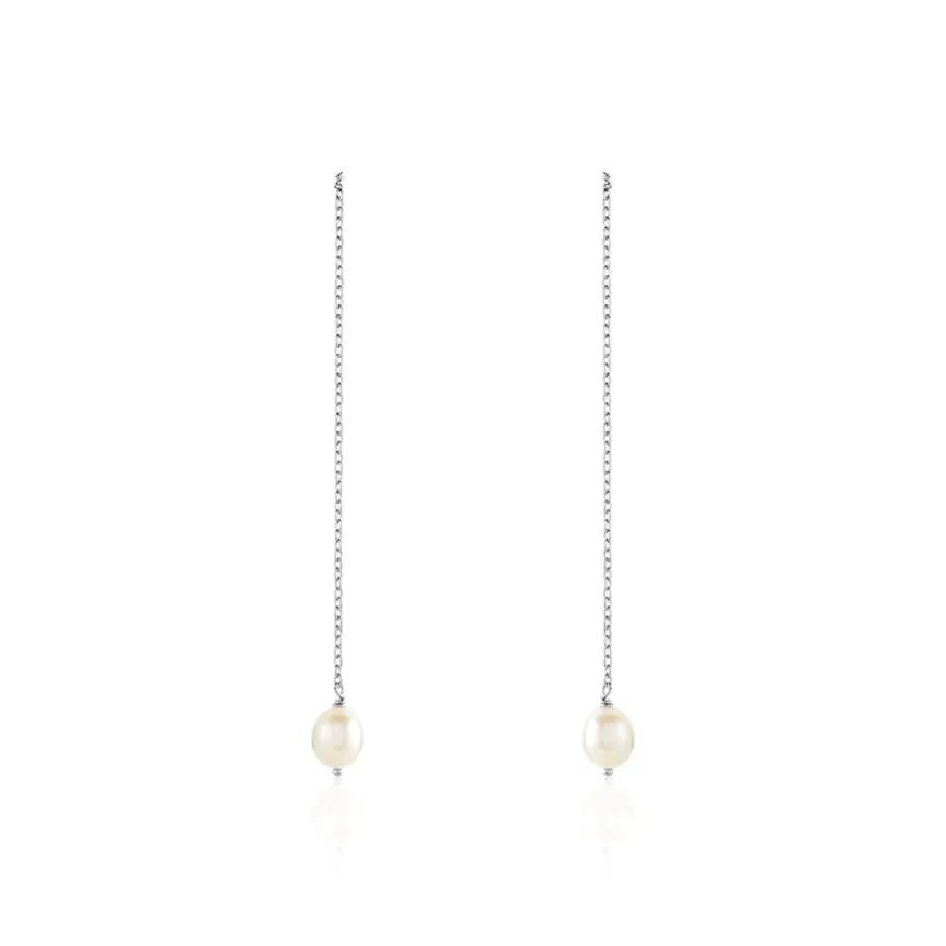 Boucles D’oreilles Pendantes Argent 925/1000 Perles De Culture Chaine Forçat