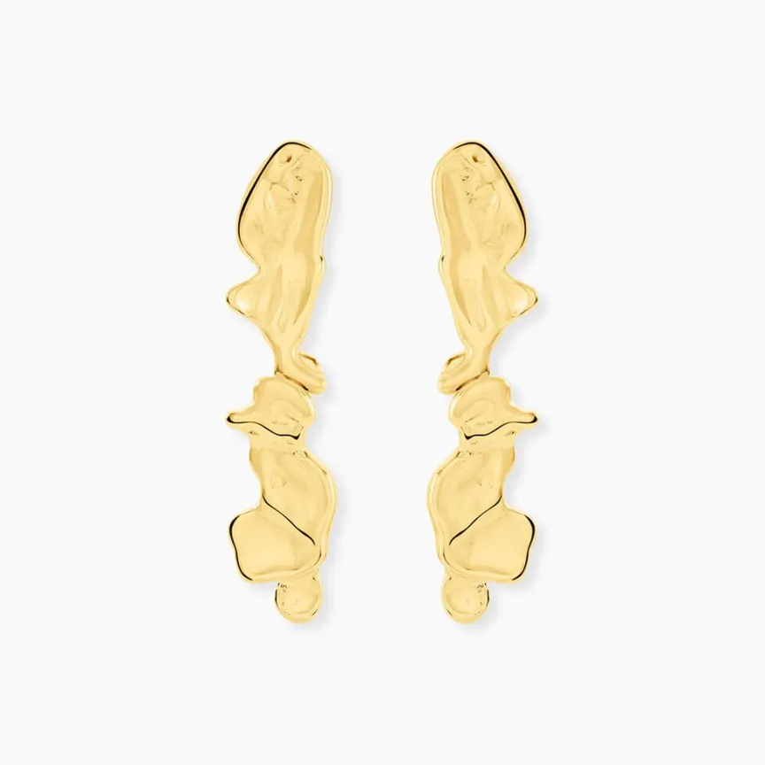 Boucles D’Oreilles Pendantes Acier Inoxydable Jaune Effet Froisse Fantaisie