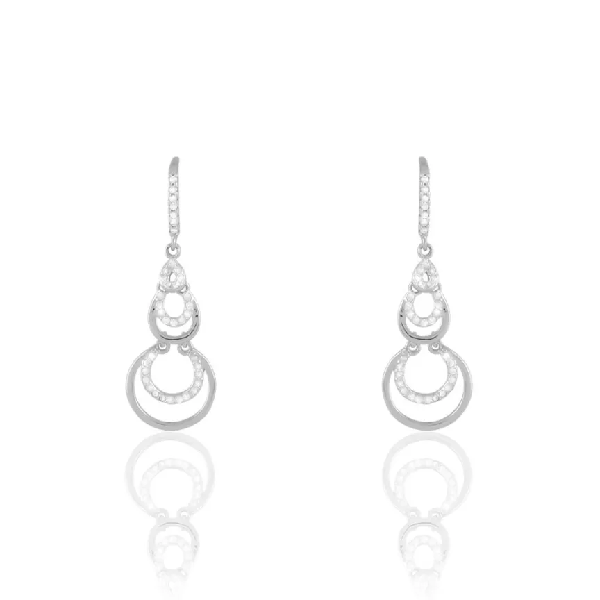 Boucles D’oreilles Pendantes Argent Blanc 925/1000 Cercles Ajoures Pavage Oxydes De Zirconium