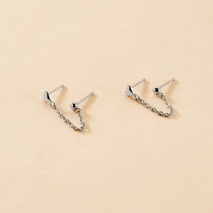 Boucles D’oreilles Pendantes Double Trou Argent Blanc 925/1000 C艙urs Chaines Forçat