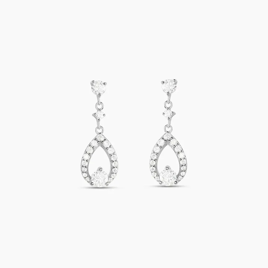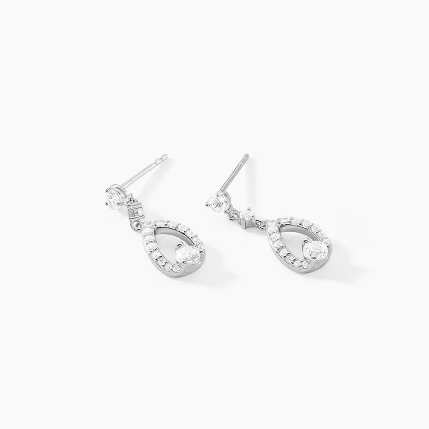 Boucles D’oreilles Argent Blanc 925/1000 Gouttes Creuses + Oxydes De Zirconium