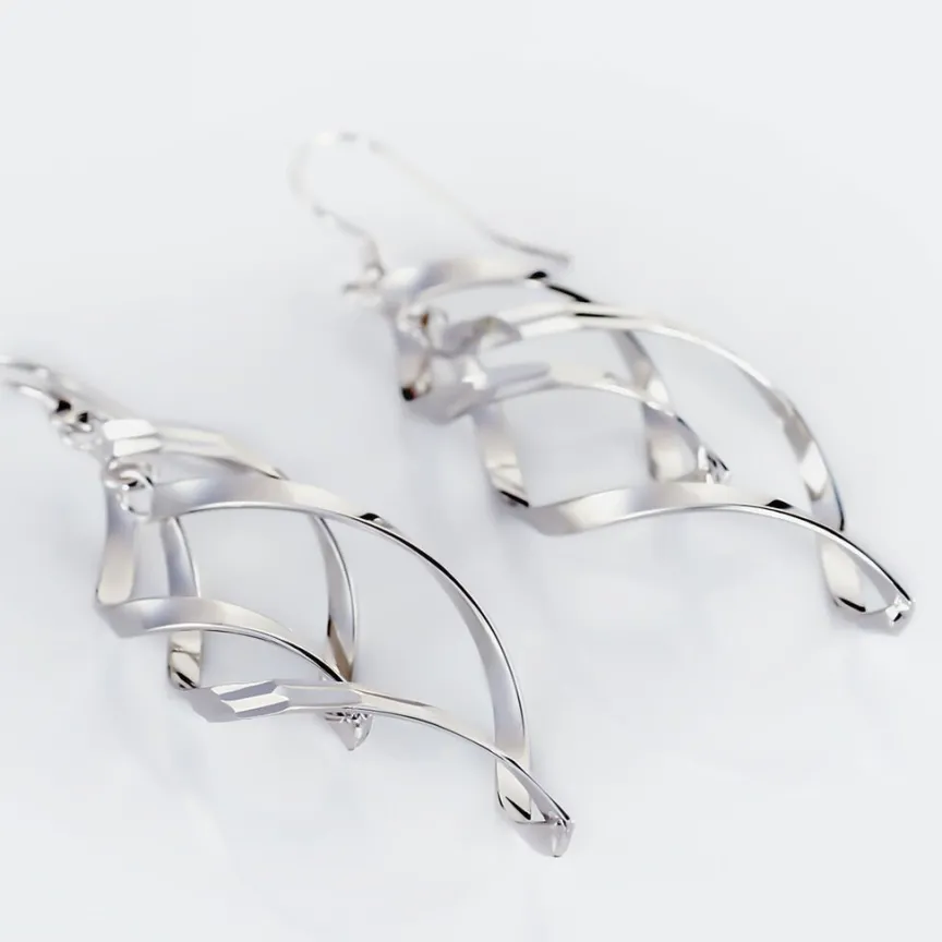 Boucles D’oreilles Pendantes Argent Blanc 925/1000 Double Losanges Ajoures Entrelaces