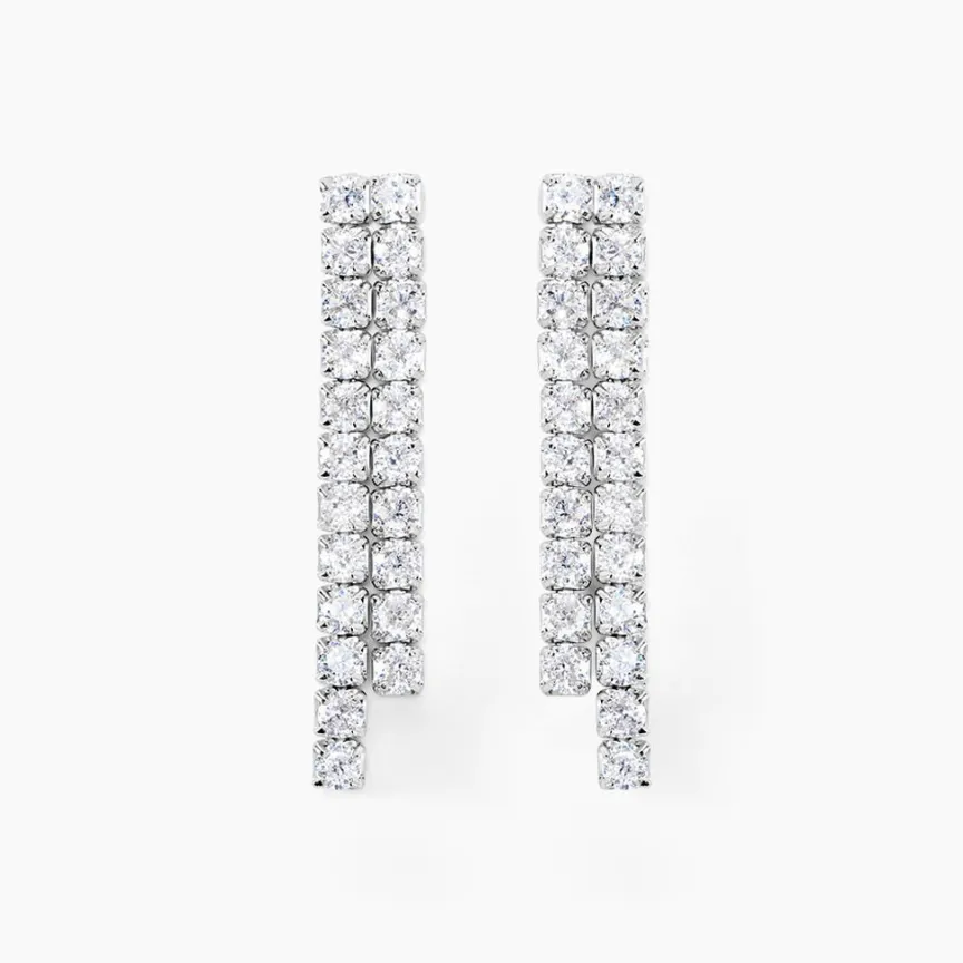 Boucles D’oreilles Argent Blanc 925/1000 Double Rivieres Oxydes De Zirconium