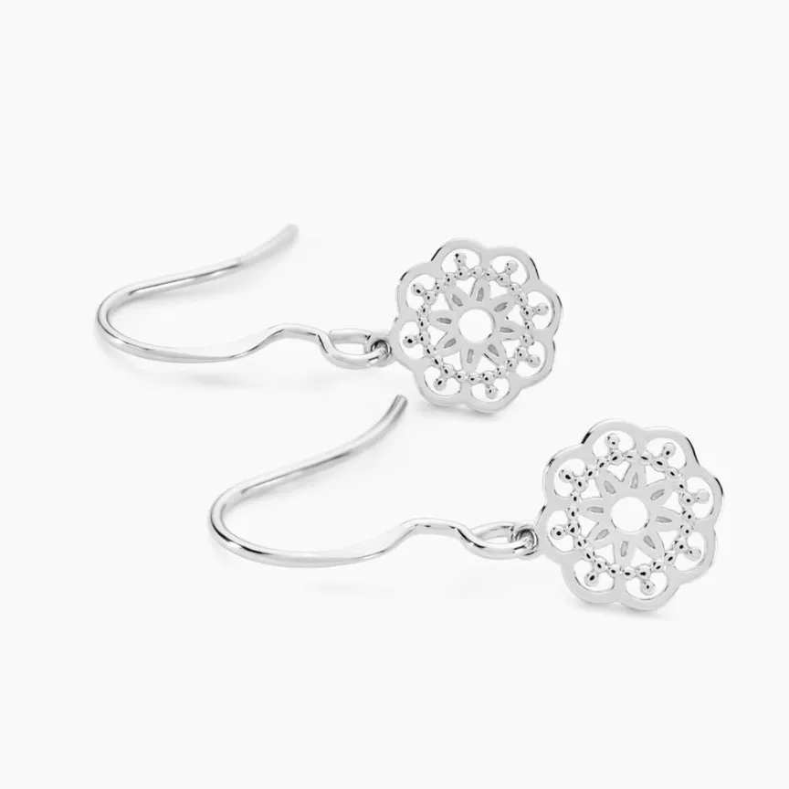 Boucles D’oreilles Pendantes Argent Blanc 925/1000 Rosaces Fleurs Diamètre 4mm