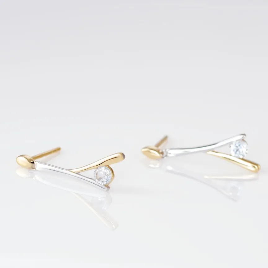 Boucles D’oreilles Pendantes Or Bicolore 375/1000 Topazes Rondes