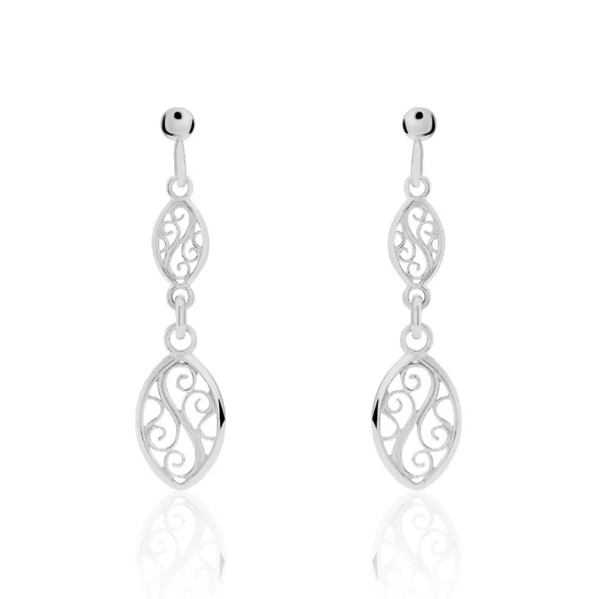 Boucles D’oreilles Pendantes Argent Blanc 925/1000 Filigranes Multiples