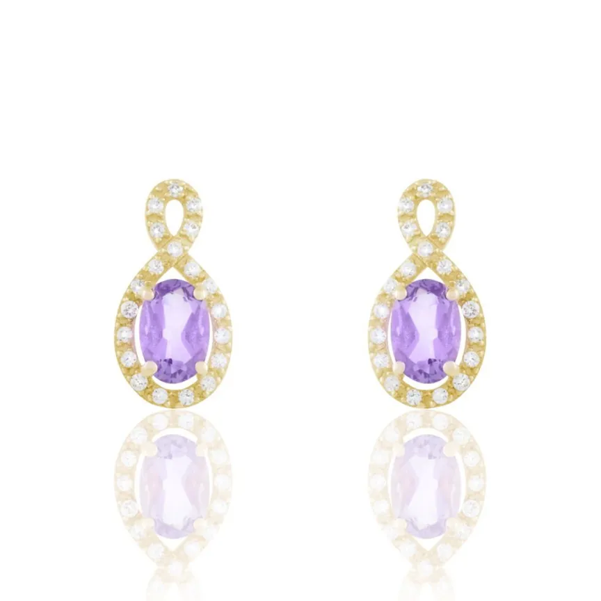 Boucles D’oreilles Pendantes Or Jaune Amethystes 1ct Serti Clos