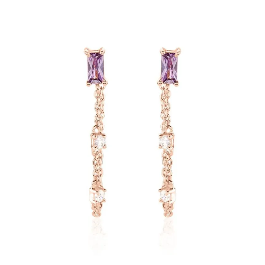 Boucles D’oreilles Pendantes Argent Rose 925/1000 Oxyde De Zirconium