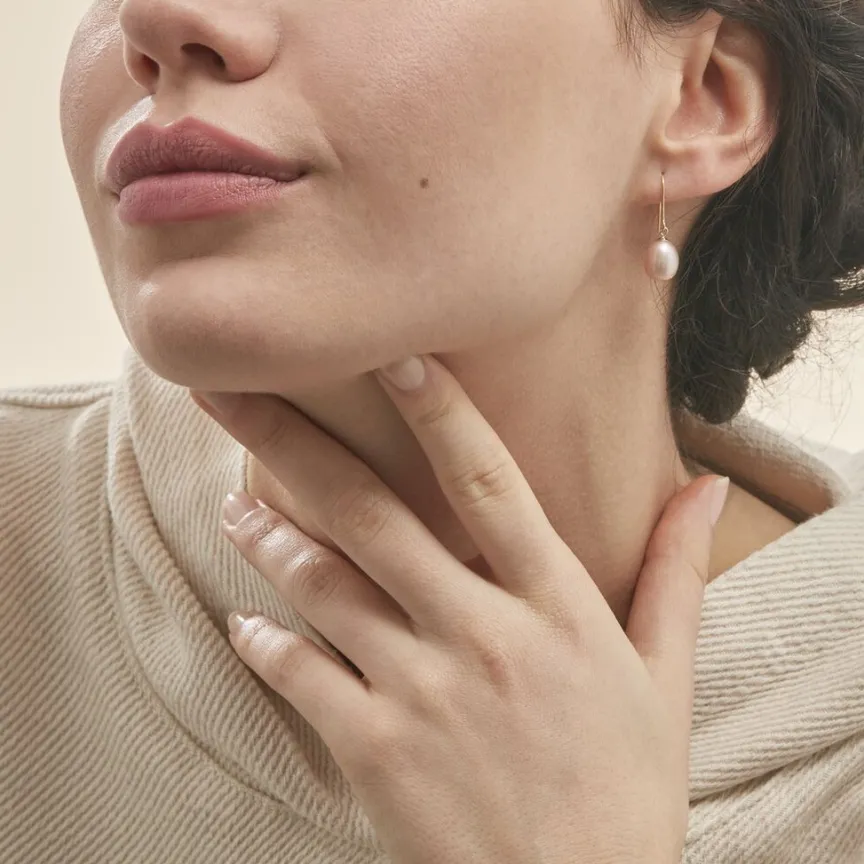 Boucles D’oreilles Pendantes Or Jaune 375/1000 Perles De Culture Rose 8/8.5mm