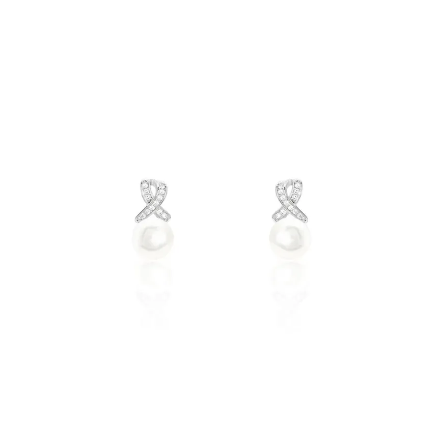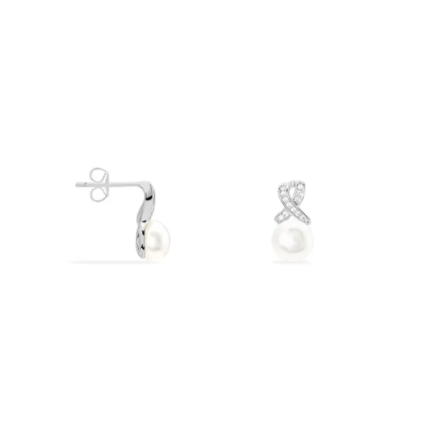 Boucles D’oreilles Argent Blanc 925/1000 Perles De Culture 7-7.5mm Et Oxydes De Zirconium