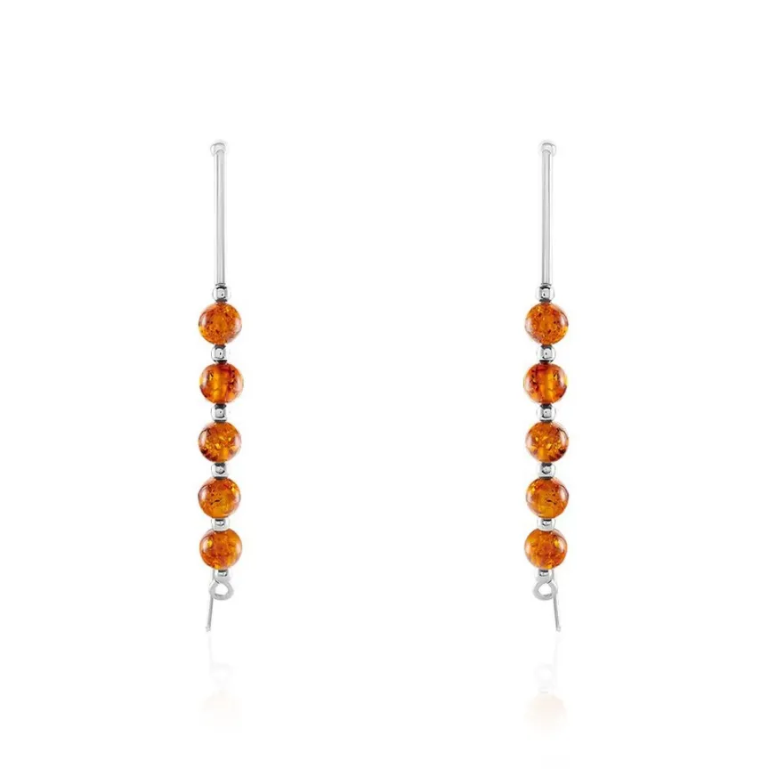 Boucles D’oreilles Pendantes Argent 925/1000 Ambre Forme Amande Cognac