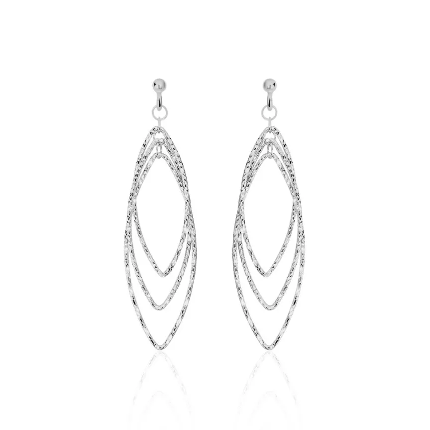 Boucles D’oreilles Pendantes Argent Blanc 925/1000 Ovales Multiples Ajoures Effet Diamante