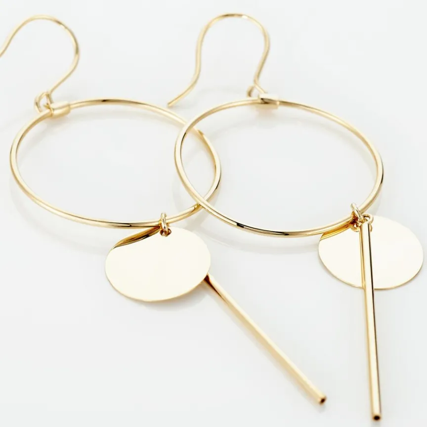 Boucles D’oreilles Or Jaune 375/1000 Cercles Ajoures + Pampilles Cercles Pleins Et Barrettes