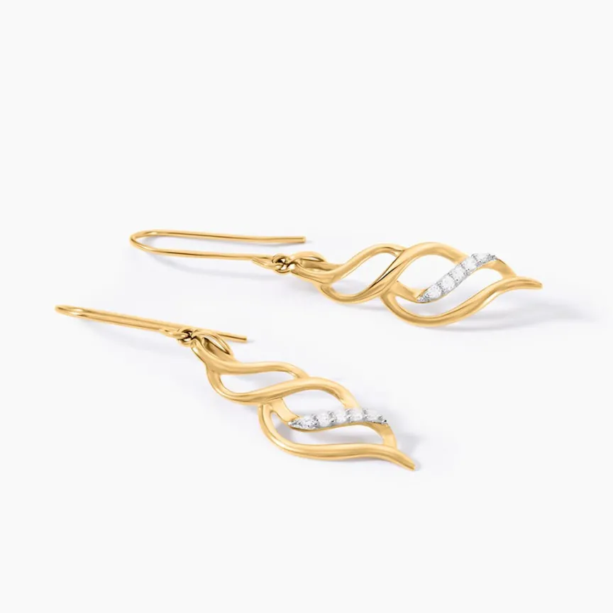 Boucles D’Oreilles Pendantes Or Jaune 750/1000 Vagues Oxyde De Zirconium