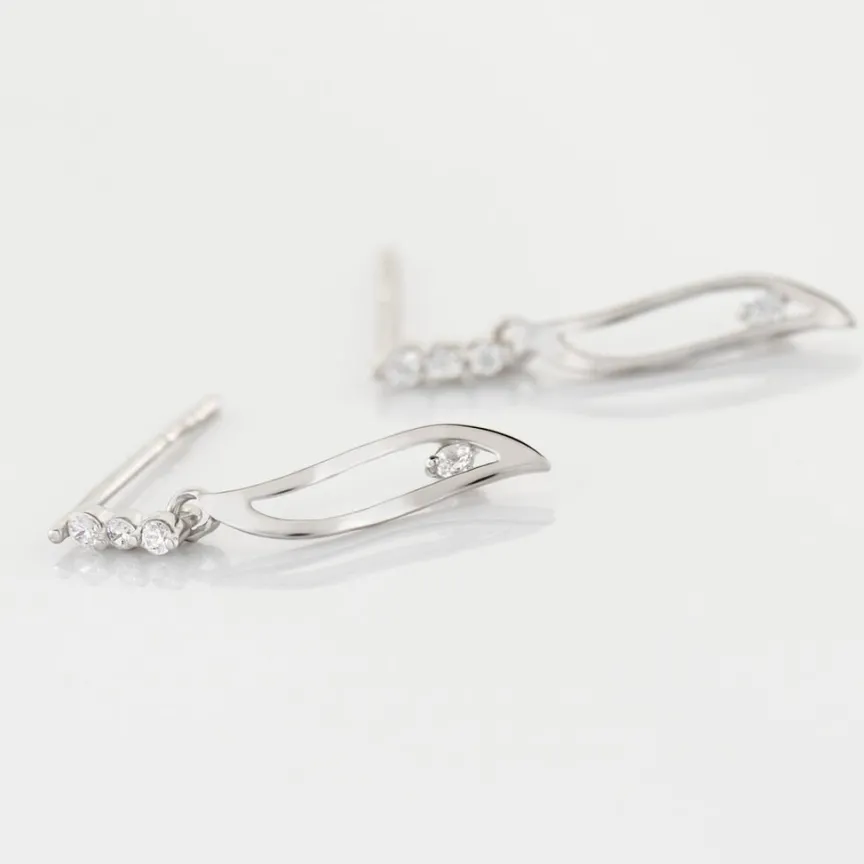 Boucles D’oreilles Or Blanc 375/1000 Forme Feuille Oxydes De Zirconium
