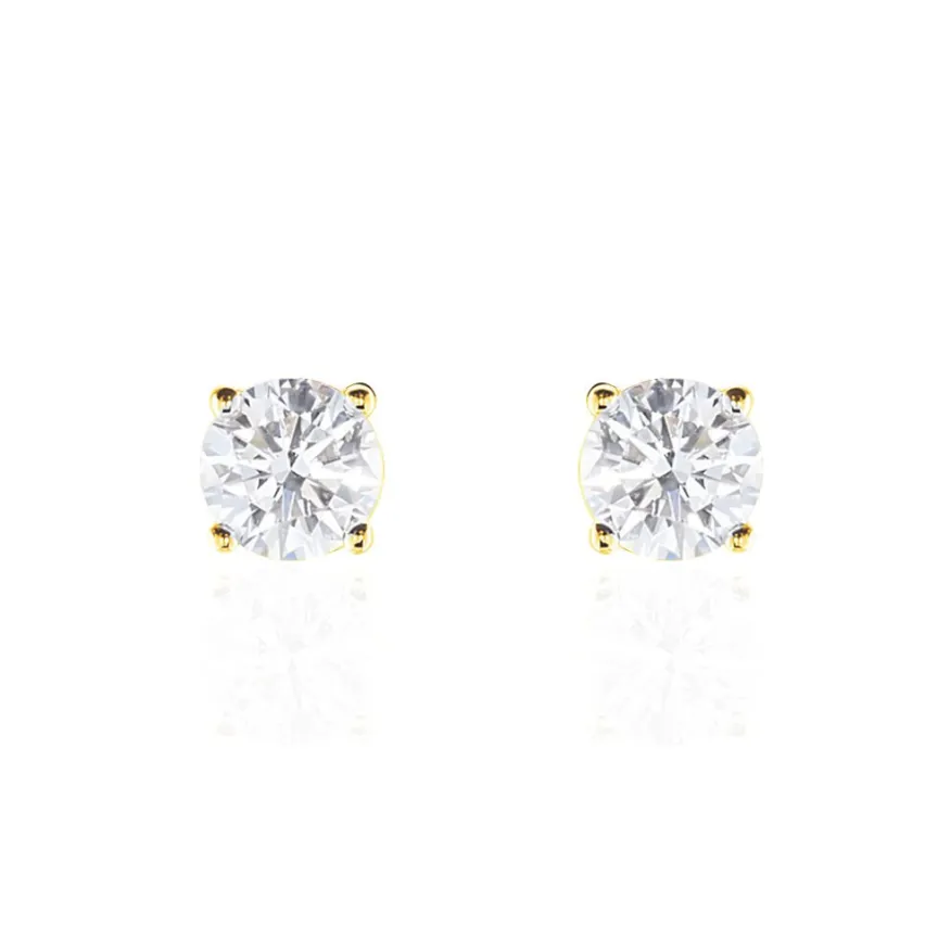 Boucles D’oreilles Or Jaune 750/1000 Puces Diamants Synthetique 0.80cts Sertis 4 Griffes Systemes Alpas