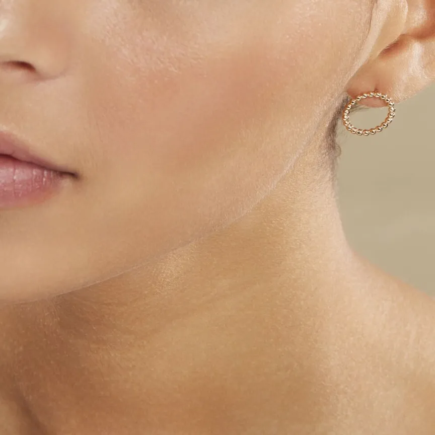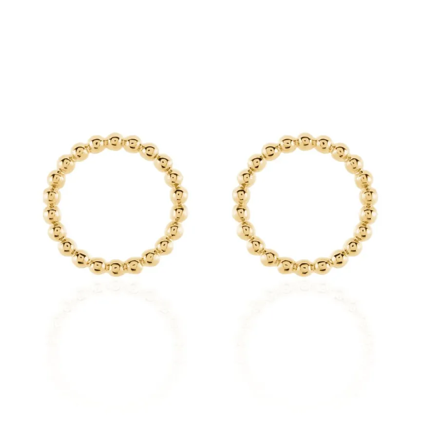 Boucles D’oreilles Puces Plaqué Or Jaune Formes Cercles Ajoures Effet Perlé
