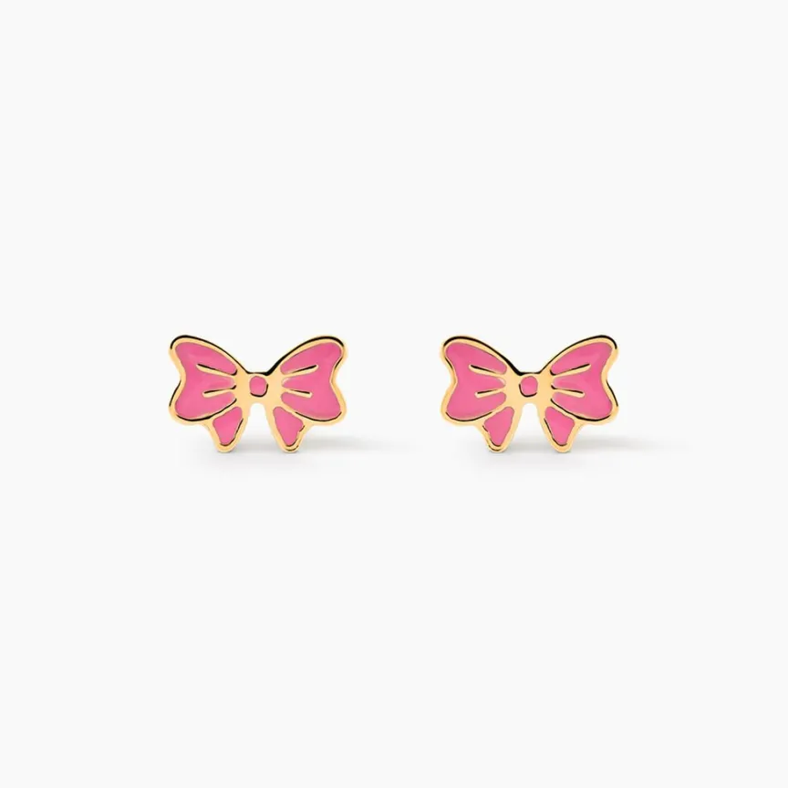 Boucles D’oreilles Or Jaune 375/1000 Puces N艙uds Roses