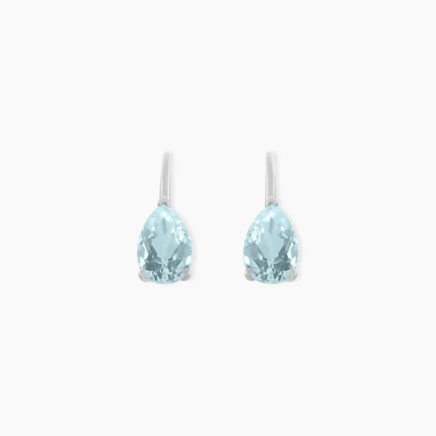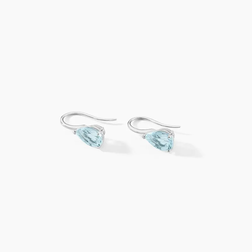 Boucles D’oreilles Or Blanc 375/1000 Topaze Forme Poire
