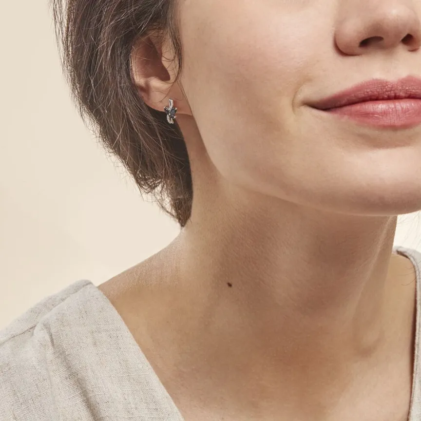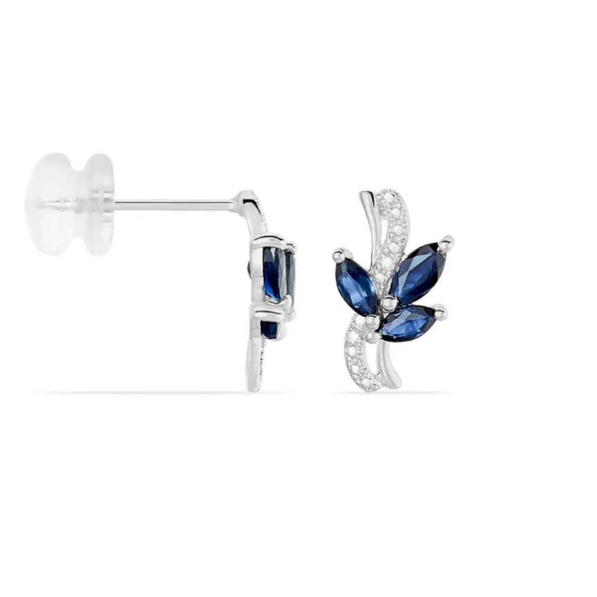 Boucles D’oreilles Or Blanc 375/1000 Saphirs Forme Navette Et Diamants Blancs