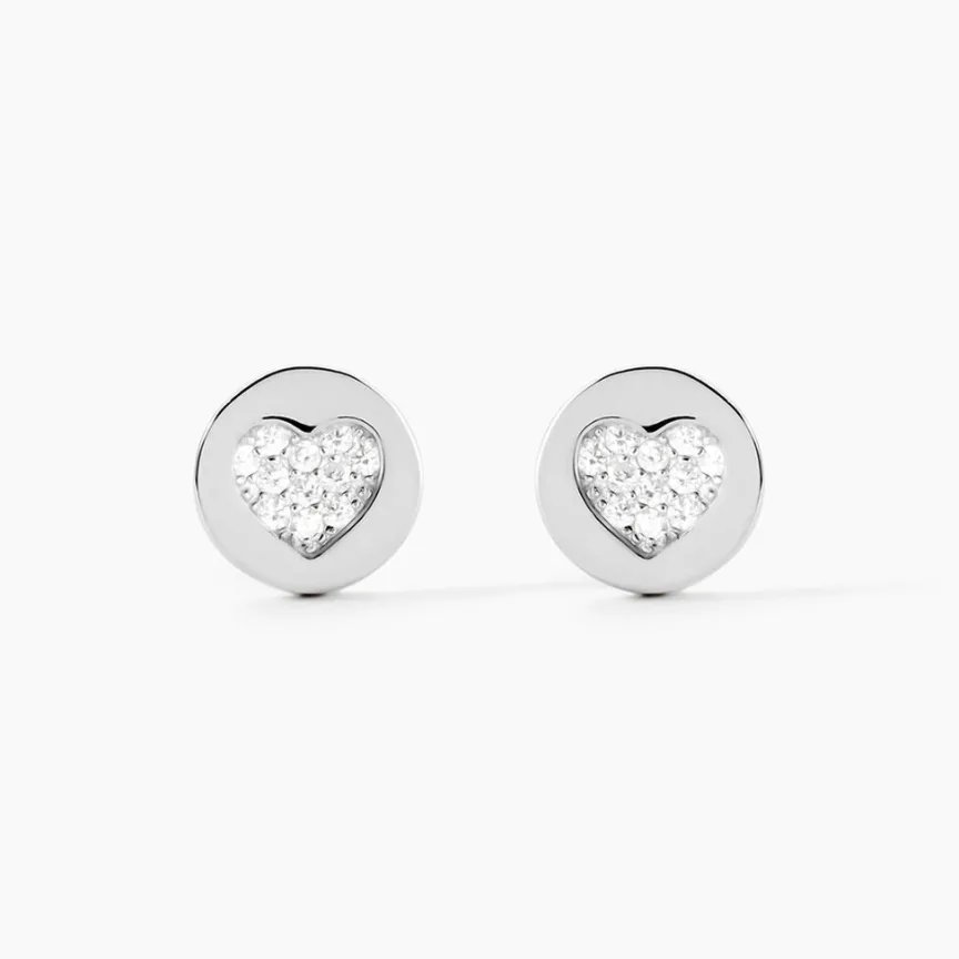 Boucles D’oreilles Puces Argent Blanc 925/1000 Pastilles Pavage C艙ur